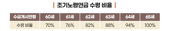 노령연금은 ‘기본연금’과 ‘부양가족연금’으로 구성되어 있는데, 노령연금 수급 개시 시기를 1년 앞당길 때마다 기본연금 수령액이 6% 포인트씩 감액됩니다.