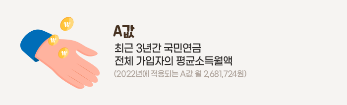‘소득이 있는 업무’란 노령연금 수급자의 월평균소득이 국민연금의 ‘A값’을 초과하는 경우를 말합니다. 이때 A값은 최근 3년간 국민연금 전체 가입자의 평균소득월액(2022년 A값 = 월 2,681,724원, 매 해 변동)을 말합니다.
