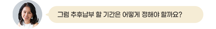 추후납부 보험료는 추후납부를 신청한 달이 속하는 달의 연금보험료에 추후납부를 희망하는 기간의 월수를 곱해서 산출합니다.