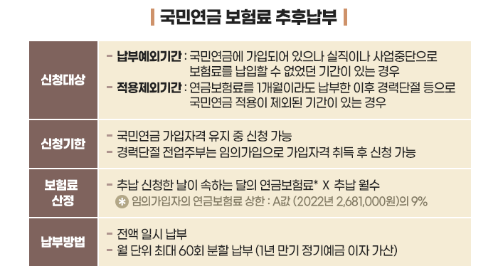추후납부는 납부예외기간이나 적용제외기간에 납부하지 않은 보험료를