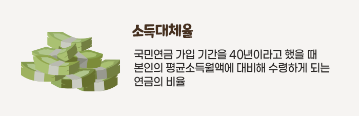 국민연금을 처음 도입하던 1988년부터 1998년까지는 소득대체율을 70% 적용했습니다. 하지만 1999년에는 소득대체율을 60%로 낮췄고, 2008년에는 다시 50%로 떨어뜨렸습니다.