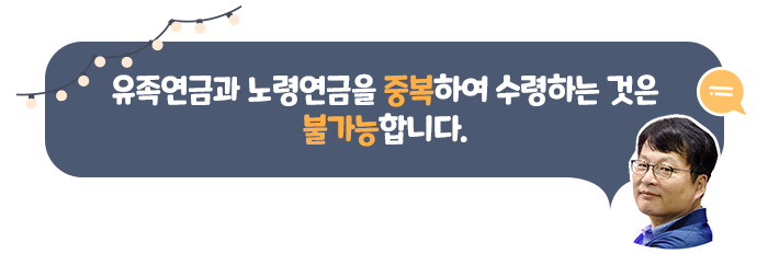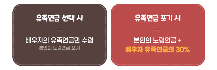 이 경우 유족연금을 선택하면 본인 노령연금 대신 유족연금만 받게 되고, 유족연금을 포기하면 본인 노령연금에 포기한 유족연금의 30%를 더해서 수령하게 됩니다.