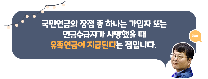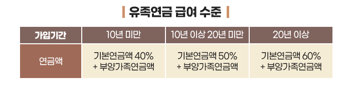 이 밖에 사망일 기준으로 연금보험료를 낸 기간이 가입대상 기간의 1/3 이상 되거나, 사망하기 5년 전부터 사망한 날까지 3년 이상 보험료를 납부한 경우에도 유족에게 연금이 지급됩니다.