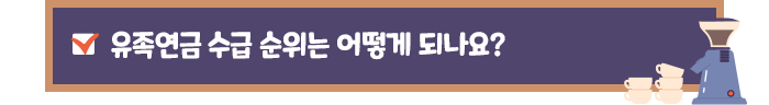 국민연금법에서는 사망자에 의해 생계를 유지하던 가족 중에서 순서를 정해두고, 최우선 순위자에게 유족연금을 지급하도록 하고 있습니다.