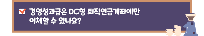 네. DC형 퇴직연금 가입자만 경영성과급을 퇴직연금에 적립할 수 있습니다.