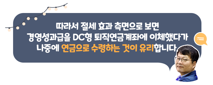 하지만 경영성과급을 DC형 퇴직연금에 이체하는 경우에는