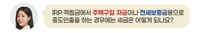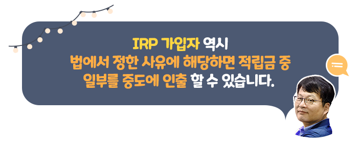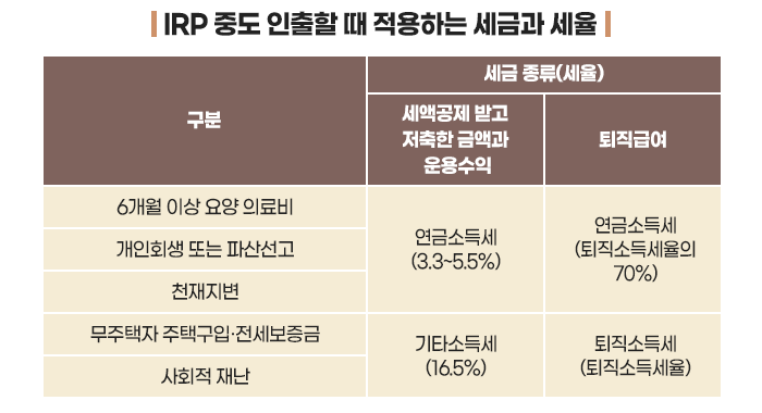 마찬가지로 IRP 적립금을 중도인출 할 때도 소득세를 납부합니다.