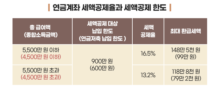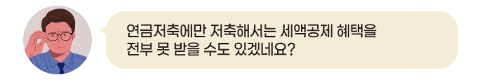 다만, 연금저축에만 가입하는 경우엔 저축 금액 중 한 해 600만 원까지만 세액공제를 받을 수 있습니다.