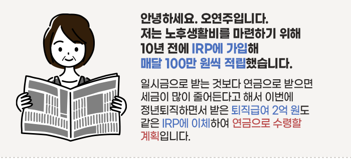 세제혜택을 주는 대신, 한 번에 많은 금액을 빼 쓰지 못하도록 연금 수령 한도를 두고 있는 것이죠.
