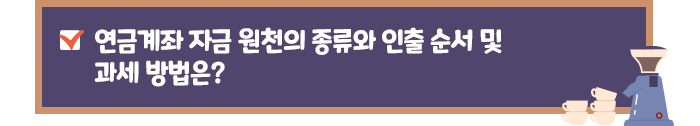 이러한 연금계좌 자금의 원천은 크게 4가지로 나눌 수 있는데요. 인출 순서에 따라 설명을 드리겠습니다.