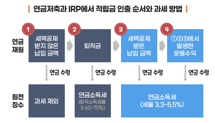 연금저축과 IRP 가입자가 연금을 신청하면, 금융회사는 법에서 정한 순서에 따라 연금을 지급하는데요. 이 순서가 자금의 원천에 따라 결정되며, 부과되는 세금도 정해집니다.
