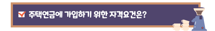주택연금은 고령자가 살고 있는 집을 담보로 맡기고 연금을 수령하는 제도입니다. 주택연금에 가입하려면 다음과 같이 몇 가지 자격을 갖춰야 하는데요.
