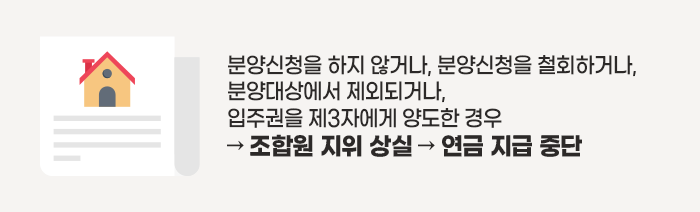 그리고 연금을 계속 수령하려면 재건축과 재개발 조합원으로 참여한다는 사실을 입증하는 서류를 제출해야 하고, 지속적인 참여 여부를 2개월마다 확인받아야 합니다. 조합원 지위를 상실하면 연금 지급이 중단됩니다.