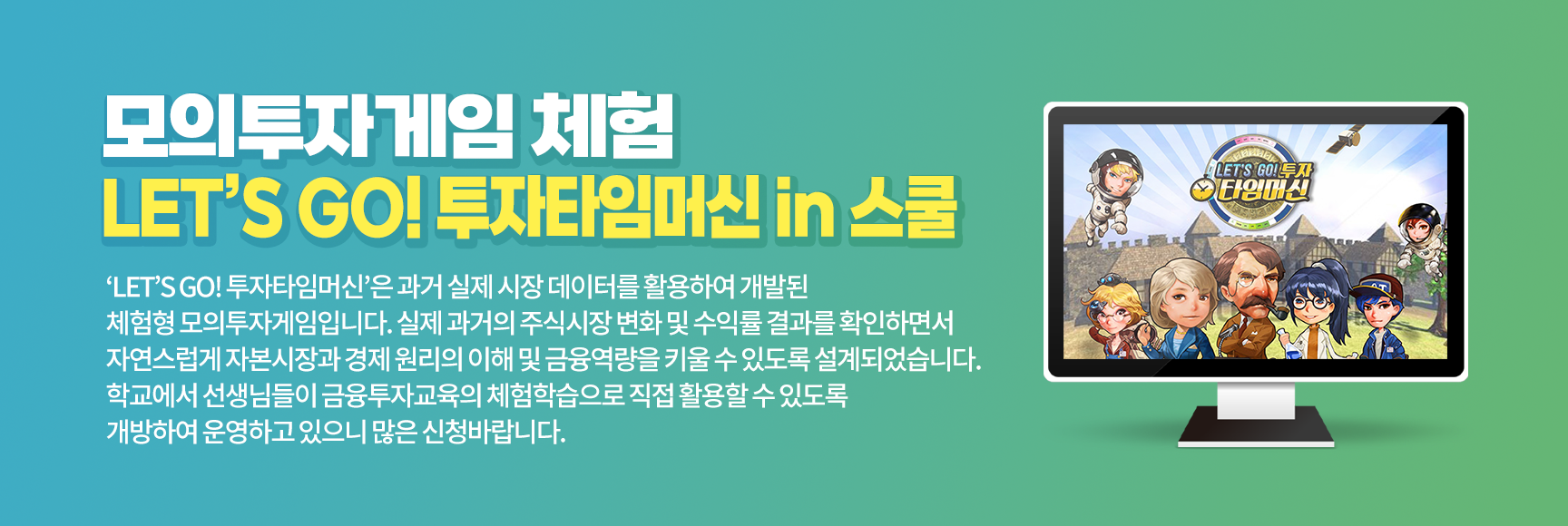 - 모의투자게임(LET’S GO! 투자타임머신)을 학교에서 이용하실 수 있는 과정입니다.