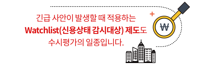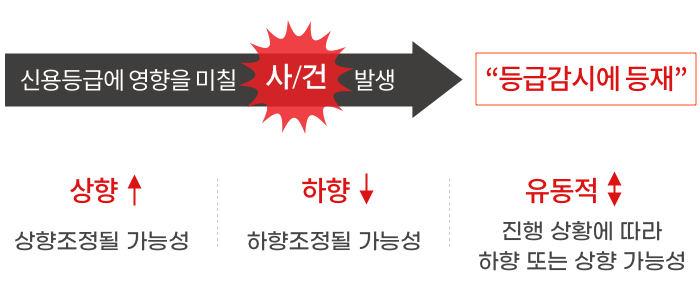 회사의 신용평가등급에 중대한 영향을 미칠 사건이 발생하면, 수시평가의 일종인 등급감시(Watchlist)에 등재합니다.