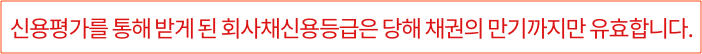 신용평가회사는 해당 기업(또는 채권)의 미래 현금흐름을 추정하여 신용평가등급을 부여하고 있기 때문에, 예상하지 못한 변수가 발생할 수도 있다는 걸 항상 명심해야 합니다.