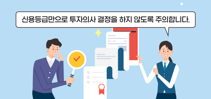 1) 회사채에 투자할 때 신용평가등급은 매우 중요하지만, 신용등급만으로 투자의사 결정을 하지 않도록 주의해야 합니다.