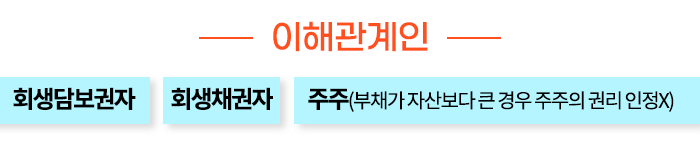 기업회생절차에서는 이해관계인을 회생담보권자(담보가 있는 채권자), 회생채권자(담보가 없는 채권자), 주주로 분류하고, 자본이 전액 잠식된 경우(부채가 자산보다 큰 경우)에는 주주의 권리(투표권)가 인정되지 않습니다.