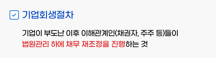그러기 위해선 먼저 우리나라의 기업구조조정제도에 대한 이해가 필요합니다.