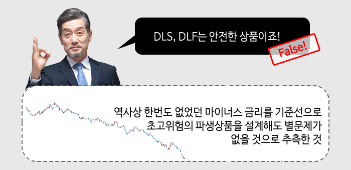 결과적으로 DLS/DLF는 비교적 변동성이 적은 ‘금리’와 연계한 안전한 ‘채권투자’로 비쳤지만, 실제는 투자 리스크가 매우 높은 ‘초고위험’의 ‘파생결합상품’이었던 셈입니다.