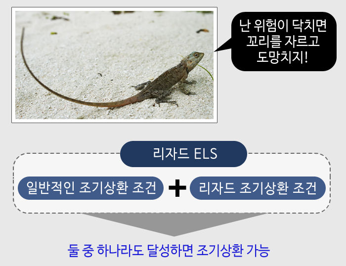 마치 도마뱀이 위기 상황에 닥치면 꼬리를 끊고 줄행랑을 치는 것과 같은 ELS 구조라는 의미로 이름 붙여진 것이 리자드 ELS입니다.
