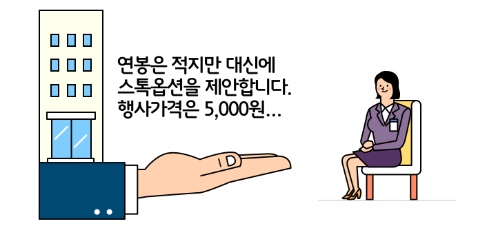 박한 연봉 때문에 뛰어난 인재를 자꾸 놓치게 되자 CEO는 스톡옵션을 제안하게 됩니다.