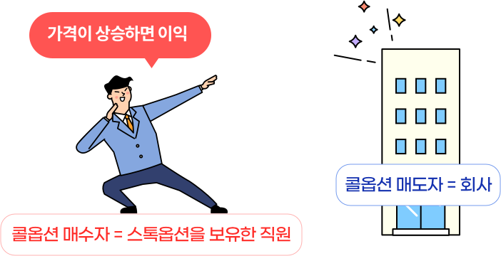 스톡옵션을 보유한 직원은 콜옵션 매수자, 회사는 콜옵션 매도자입니다.