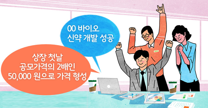 직원은 회사에 입사하여 몇 년을 열심히 연구에 매진하였고, 회사는 신약 개발에 성공하면서 상장도 진행하였습니다.