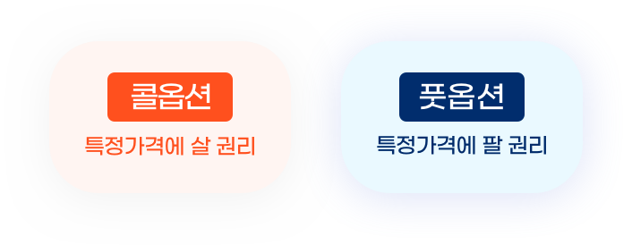 내가 어떤 권리를 주장할 것인가에 따라 옵션은 두 가지로 나뉩니다. 특정가격에 살 권리를 콜옵션, 특정가격에 팔 권리를 풋옵션이라고 합니다.