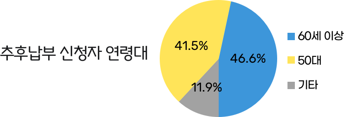 추후납부 신청자의 대부분이 50~60대인 셈입니다.