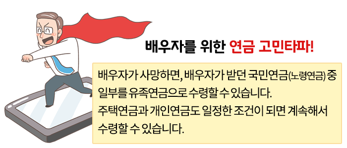 남편이 유족연금 30만 원을 받거나, 아니면 본인 노령연금 150만 원에 유족연금의 30%인 9만 원을 더한 159만 원을 선택해야 합니다. 당연히 유족연금을 포기하고 노령연금 159만 원을 받는 것이 좋습니다.