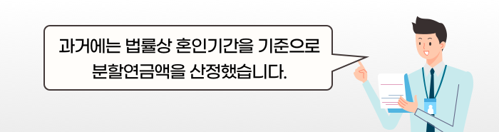 이렇게 되면 별거나 가출 등으로 실질적으로 혼인관계가 존재하지 않았던 기간까지 포함해서 분할대상 연금이 결정되기 때문에, 분할청구를 당하는 입장에서는 억울할 수밖에 없습니다.