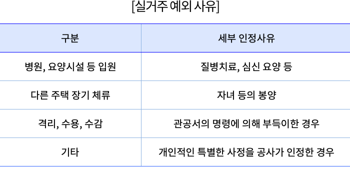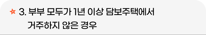 부부 모두가 1년 이상 담보주택에 거주하지 않아도 지급이 중단됩니다. 다만 실거주 예외 사유가 있어 주택금융공사에 서면통지하거나, 공사가 직접 확인한 후 불가피하다고 판단하는 경우에는 그렇지 않습니다.