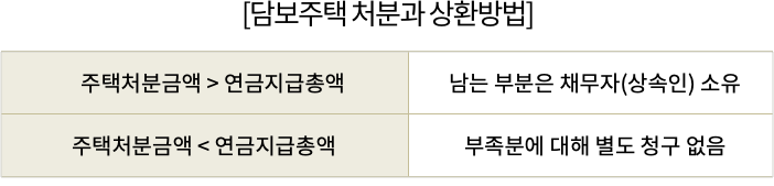 이때 주택처분금액이 연금지급총액보다 많으면, 남은 금액이 상속인에게 돌아갑니다. 반대로 주택처분금액보다 연금지급총액이 많을 수도 있는데, 이때는 상속인에게 부족분을 청구하지는 않습니다.