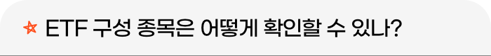 ETF를 운용하는 회사는 지수를 구성하는 종목과 비율을 매일 공시해야 하고, 거래소와 증권사 홈페이지, 거래시스템(HTS)에서도 확인할 수 있습니다.