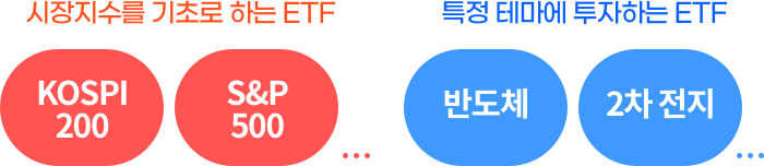 예전에는 KOSPI200이나 S&P500과 같은 시장지수를 기초로 하는 ETF가 많았지만, 최근에는 반도체와 2차 전지처럼 특정한 테마에 투자하는 ETF가 속속 등장하고 있습니다.