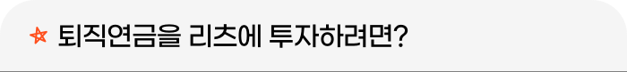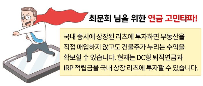 지금 모으고 있는 퇴직연금의 적립금을 리츠에 투자하는 건 어떨까요?