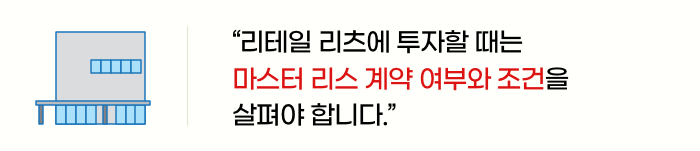 최근 국내 상장된 리테일 리츠는 대부분 마스터 리스 방식을 취하고 있습니다.