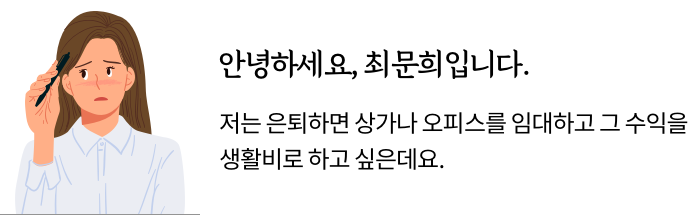 하지만 어디까지나 생각뿐입니다. 부동산을 매매하는데 돈이 한두 푼 들어가는 것도 아니고, 나이 들어서 세입자 관리하며 산다는 게 말처럼 쉽지도 않을 것 같아서요.