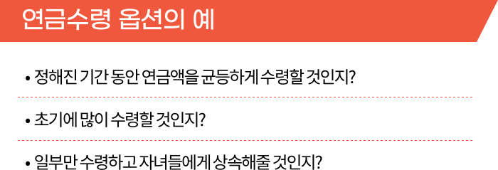 연금수령액은 연금수령 옵션을 어떻게 설계하느냐에 따라 달라질 수 있습니다.