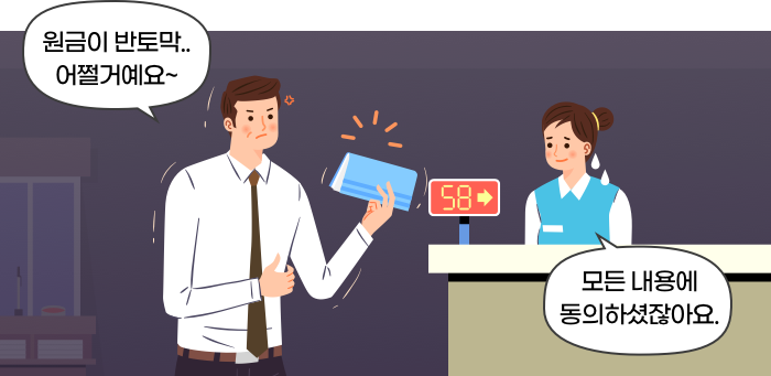 그리고 얼마 지나지 않아 수익률을 확인하러 금융회사를 찾은 A씨는 뒷목을 잡을 수밖에 없었습니다. 수익률이 좋긴 커녕 원금의 반도 남지 않았기 때문입니다.