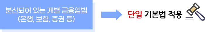 또한 금융상품에 대한 판매행위 규제가 개별 금융업법(은행, 보험, 증권 등)에 분산되어 있었는데 단일 기본법을 적용함으로써 동일한 유형의 금융상품에 대해서는 동일한 잣대의 기준으로 통합하고자 한 것도 이번 금소법의 큰 목적입니다.