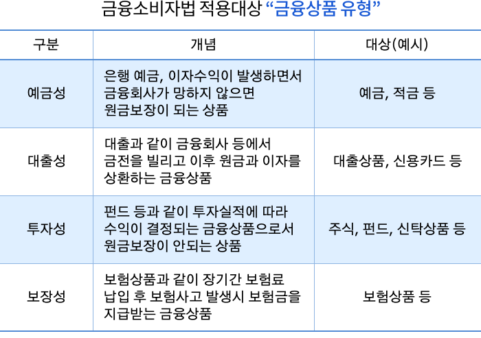 전문 사업자인 금융회사에 비해 상대적으로 금융지식이나 금융정보가 부족한 금융소비자들을 지켜주기 위해 제정된 법률로서 금융소비자의 권리를 강화해주는 법률입니다.