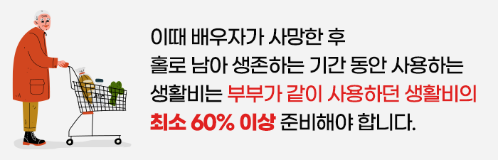 즉 부부가 같이 생존하는 데 필요한 생활비 뿐만아니라 부부의 간병 비용, 홀로 남아 생존하는 기간 동안의 생활비까지 총 4가지로 구성되는 거죠.