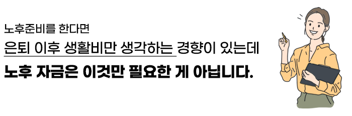 따라서 이들 각 기간에 필요한 비용으로 노후자금이 구성돼야 합니다.
