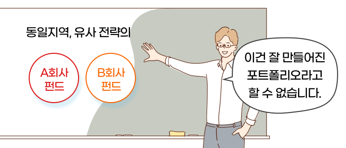 만약 A 회사 펀드와 B 회사의 펀드가 동일지역, 유사한 전략을 가진 펀드 상품이라면 회사를 나눈 것뿐이지 계란을 여러 바구니에 나누어 담은 것은 아닙니다.