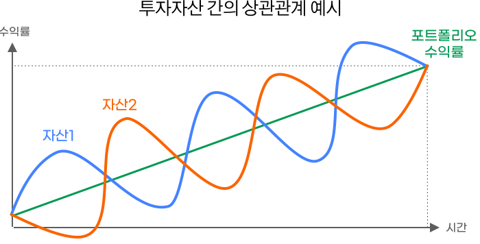 즉, 상관관계를 고려한 포트폴리오 투자를 구성해야 하며, 이는 한쪽이 증가할 때 다른 쪽이 감소하는 투자조합을 의미합니다.