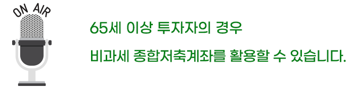 65세 이상일 때, 가입할 수 있는 비과세종합저축계좌는 가입원금 5,000만 원 한도로 이자소득세 및 배당소득세 비과세 혜택을 받을 수 있습니다.