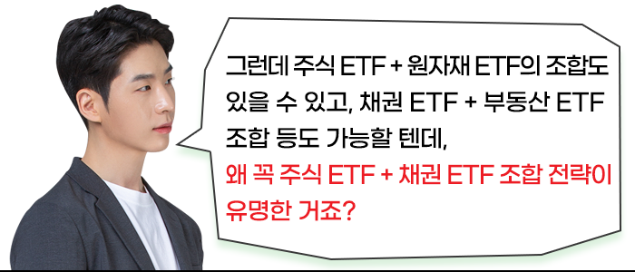 수많은 자산군 중 그 상관계수가 가장 낮은 두 자산군이 바로 주식자산과 채권자산입니다.
