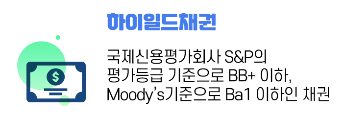 하이일드채권은 신용등급을 우량으로 받지 못한 회사들이 발행한 회사채이기 때문에 우량회사의 채권보다는 이자율이 훨씬 높은 편입니다.